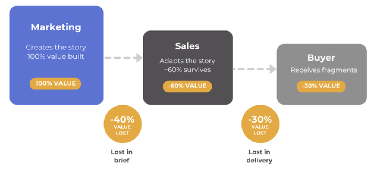 Every deal that stalls, every buyer who goes quiet, every “we went another direction” — it’s the same problem. Your value story isn’t surviving the journey to the buyer. And every quarter it doesn’t, a competitor gets there first.