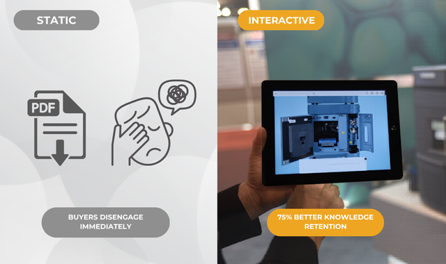 Buyers are 70–80% through their decision before you enter the room — self-directing, comparing options, building consensus without you. Static content won’t get you back in. Interactive engagement isn’t a nice-to-have. It’s a revenue driver.