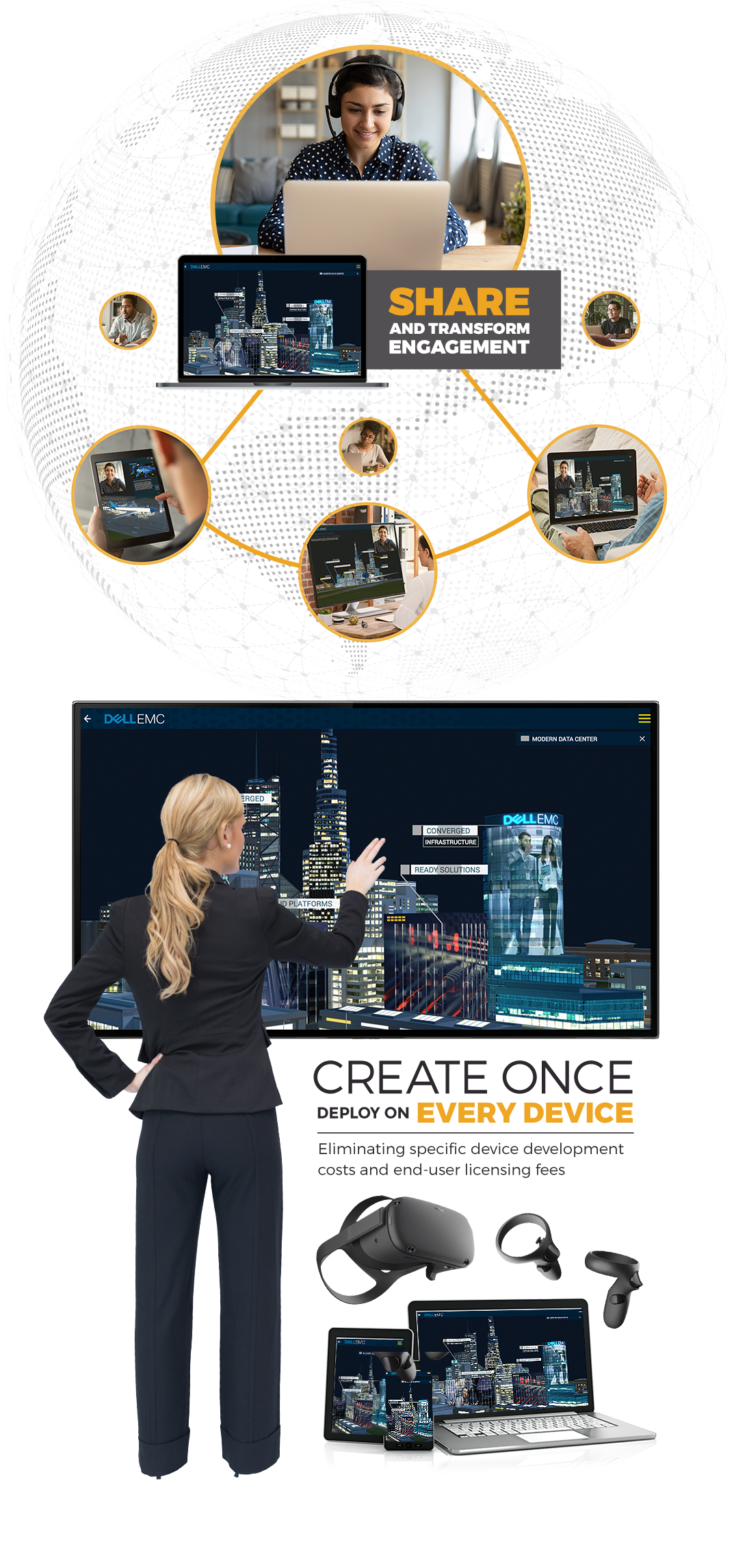 For Cisco, there was the challenge of getting their global sales team and partners to consistently articulate the value of any product in their extensive portfolio. The application includes a 100+ 3D product catalog, including an interactive solution story for their Multi-Cloud solution.